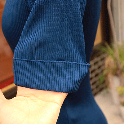 リブですので横方向への伸縮がありますのでバストとウエストは手を離した最小値と、手で引っ張った最大値を記載しています。