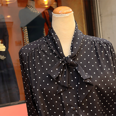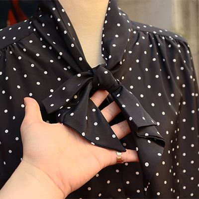 【ellesaison】短めボウタイがアクセント♪ドット柄ブラウスです。