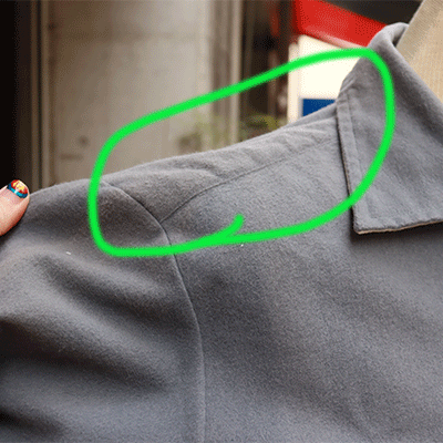 ずっと畳まれて袋に入れられていたため肩の辺り等角にあたっていた箇所の埃っぽさの線がございます(写真をご参照ください)