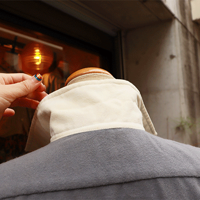 ボタン合わせはメンズ合わせですので、サイズも昭和のメンズのMサイズですよ〜