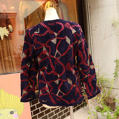 【LA CARBONA】チェーン×リボン柄?ニットカーディガンです。