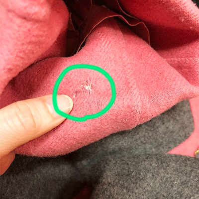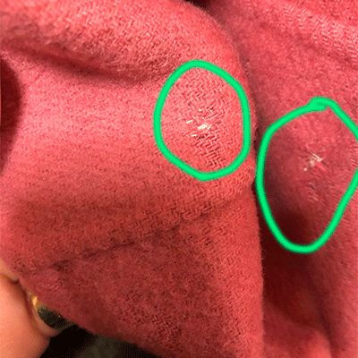 右袖口の折り返し他ピンク部分に補修跡がございます