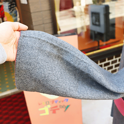 ノーカラータイプですので、下から棒タイのリボン出したり、タートルネックのニットを出したりしても生地がもたつかず可愛いですよ〜